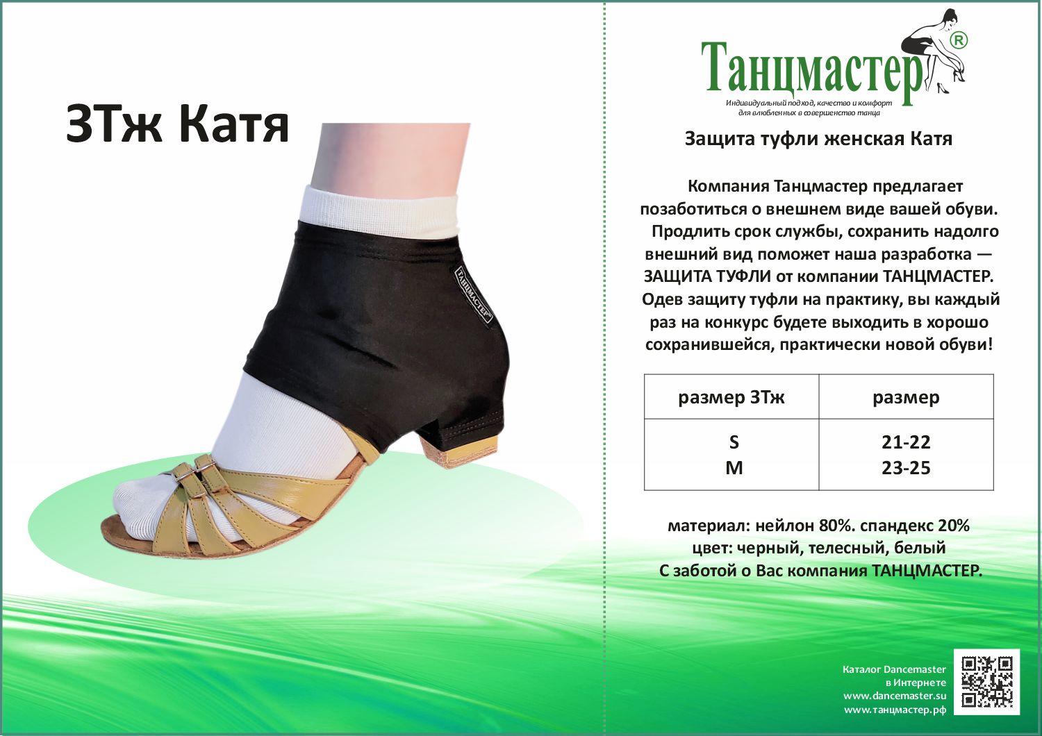 Компания "ТАНЦМАСТЕР" является производителем танцевальной обуви и одежды для занятий и выступлений, а также сопутствующих атрибутов танцевальной хореографии.